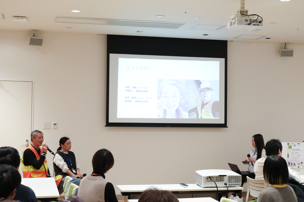 ゲストトークセッションでは、京都府出身で土佐町に住む前田さんと東京都出身で大川村に住む奥河さんの2名を迎えました。