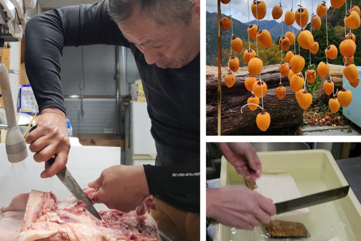 前半のトークセッションでは、地域に居住する2名をゲストとしてお迎えし、食や狩猟の実体験を交えながら、充実した暮らしぶりを紹介していただきました。後半はお待ちかねの餅つき体験!地域で捕らえた猪の肉を使ったシシ汁なども提供し、地域の美食に舌鼓。